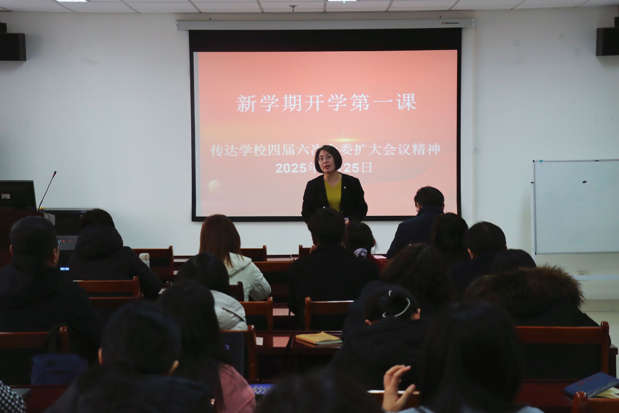 2月25日,6165cc金沙总站检测中心召开全体教职工“开学第一课”,传达学习济南大学四届六次全委扩大会议精神。学院党委书记季竹君主持会议并讲话,全体教职工参加会议。