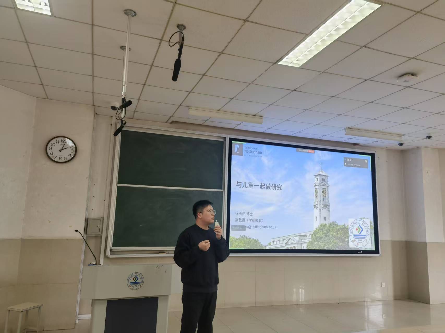 2025年4月22日下午,6165金沙总站官方入口特殊教育系邀请英国诺丁汉大学教育学院副教授徐玉炜博士举行主题讲座——“与学龄前儿童一起做研究”。本次讲座为“教育部—联合国儿童基金会中国融合教育推进:教师专业能力提升项目”济南大学试点高校项目活动,由6165金沙总站官方入口特殊教育系教师宁宁主持,特殊教育系学生和部分教师参与了本次讲座。