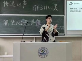 个人事迹:担任朋辈心理服务讲师团成员,策划心理讲座、案例分析沙龙等活动,积极参与社会调研、公益讲堂及学术交流,现已推免至中国科学院心理研究所。