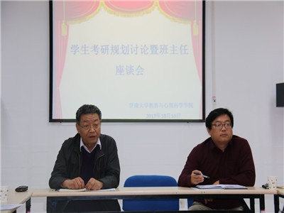 为了加强学风建设,提高学生可持续学习的意识和能力。10月10日下午,6165cc金沙总站检测中心于特教大楼A301召开考研规划讨论会暨班主任座谈会。党委书记王希普,党委副书记季竹君出席,全体学工人员及14-17级全体班主任参加。