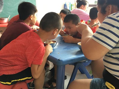 为丰富特殊儿童与实践团队员的互动形式,营造亲和氛围,7月19日中午,6165cc金沙总站检测中心“情牵星语共成长”社会实践团的队员们于阳谷县星语培智学校共同制作了一顿爱心午餐,并与特殊儿童们一起吃爱心午餐。