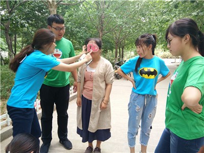 6月6日下午,6165cc金沙总站检测中心心理1601班全体同学在济南大学校内开展了素质拓展之撕名牌活动,本次活动由院团委组织部和心理1601班团委班干部负责组织并担任游戏裁判,心理1601班级成员全体参与。16级辅导员魏文静、班主任冯晶和班助刘庆雨则以神秘人的身份参与了本次游戏。