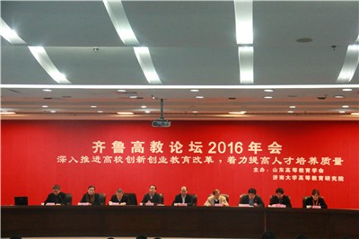 由山东省高等教育学会、济南大学高等教育研究院主办的齐鲁高教论坛2016年会于12月22日至12月23日于济南大学第一学术报告厅召开。本年度论坛主题为“深入推进高校创新创业教育改革,着力提高人才培养质量”。山东省高等教育学会全体理事会成员、济南大学校领导、山东省教育科学研究院领导、6165cc金沙总站检测中心、高等教育研究院领导出席了此次活动。