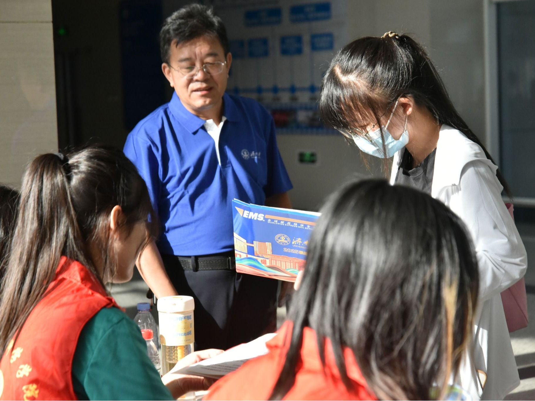本次活动部署周密有序,氛围热烈温馨。学院组建的志愿者团队提前到位,统一穿着院服在学校门口等候,细致讲解报到流程与校园布局,全程引导新生前往报到点。在报到处,志愿者高效为新生办理信息登记,精准发放相关材料,并逐一解答新生关于选课、住宿的疑问。班主任王群老师全程驻守,一边与新生亲切交流,了解其学习基础与兴趣方向,缓解学生的紧张情绪;一边与家长深入沟通,介绍“3+2”培养方案、专业课程设置及就业前景等,让家长充分了解培养体系,缓解家长的顾虑。多位新生纷纷表示,志愿者的热情指引与老师的贴心关怀,让他们快速放下顾虑,对未来的学习生活充满期待与信心。