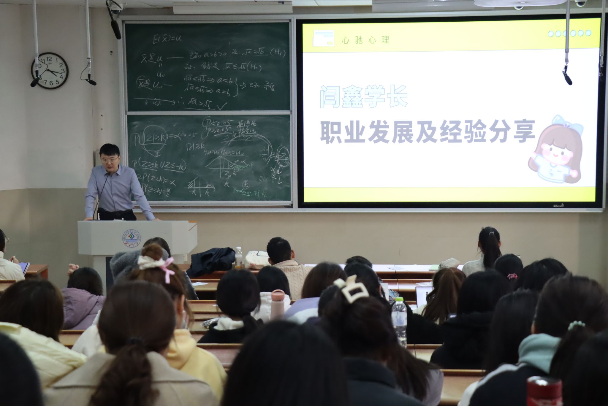 杨晨就“心理学如何与互联网行业结合”为主体向同学们作了心理学专业职业生涯报告。他表示,同学们应将择业的眼光放大,将自我专业与多方面相结合,选择适合自己的领域发展。