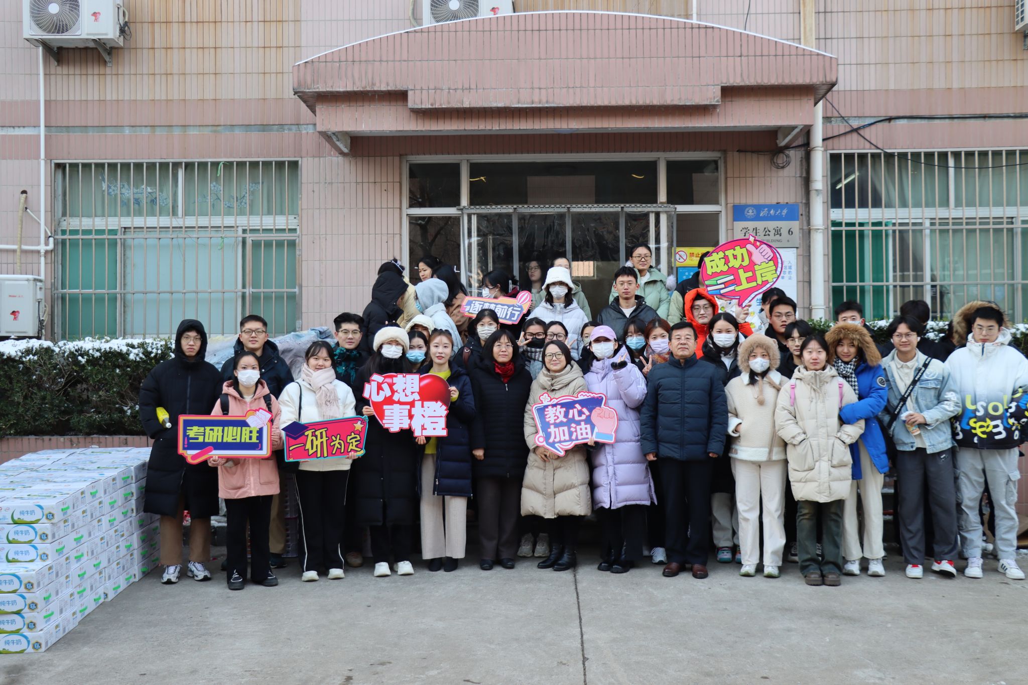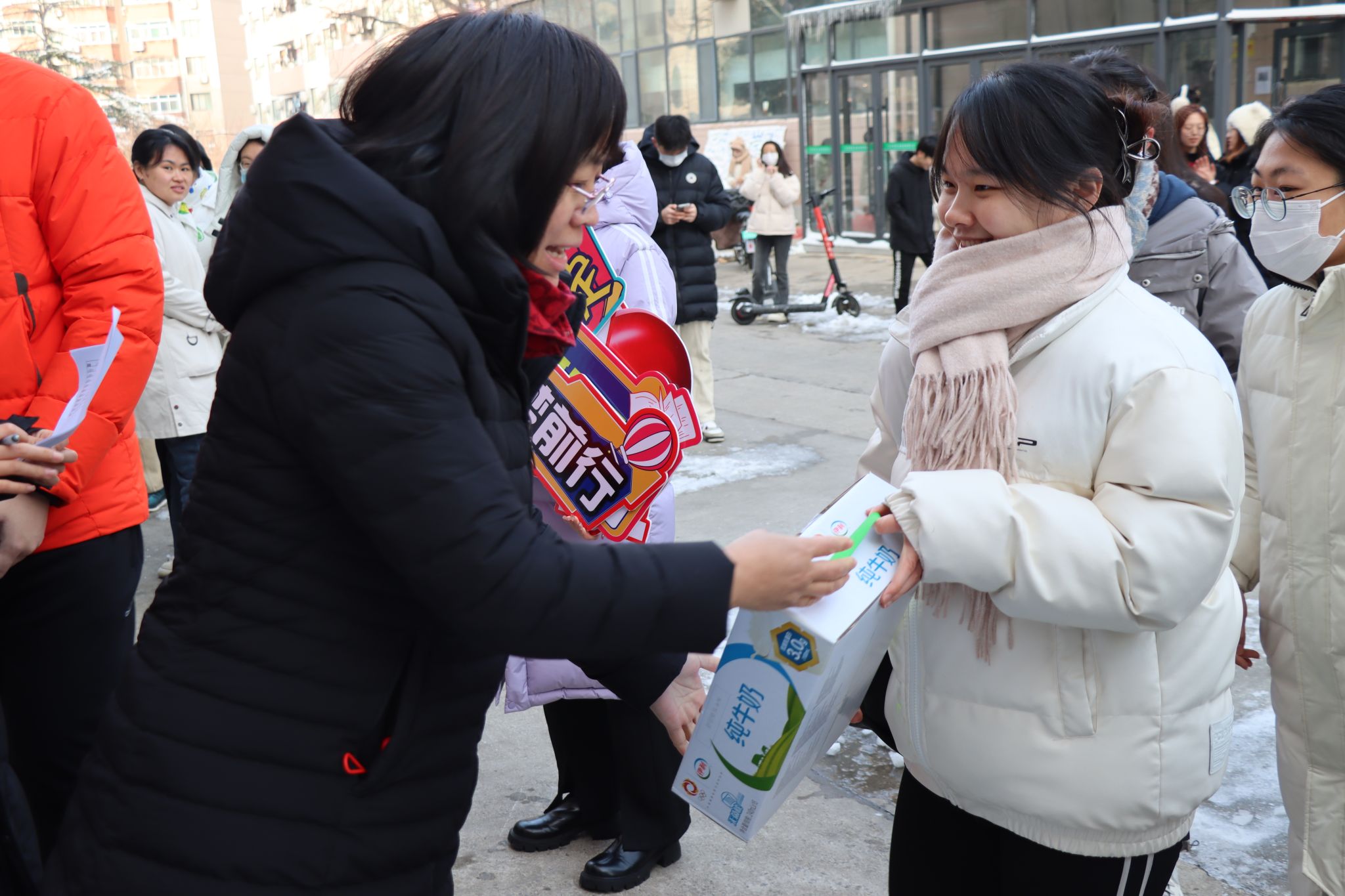 一份份暖心礼包饱含着学院对考研学子的关怀,有寓意“一举夺魁”的橘子,也有寓意“牛气冲天”的牛奶,老师们带着殷切的祝福将礼包亲手送到在场的每一位学子手中。学院院长陈功香代表学院向考研学子们送上最真挚的祝福,对同学们努力学习、追求梦想的精神给予了高度的赞扬与肯定。她鼓励同学们合理规划时间和进度,做到劳逸结合,保持平稳的心态,以饱满的精神状态迎接最后的考试,全力以赴地备战考研战场最后的“一公里”。考研学子们纷纷表示,学院的关怀让他们倍感温暖,在最后的冲刺阶段,一定会珍惜时间,以良好精神面貌迎接考试。