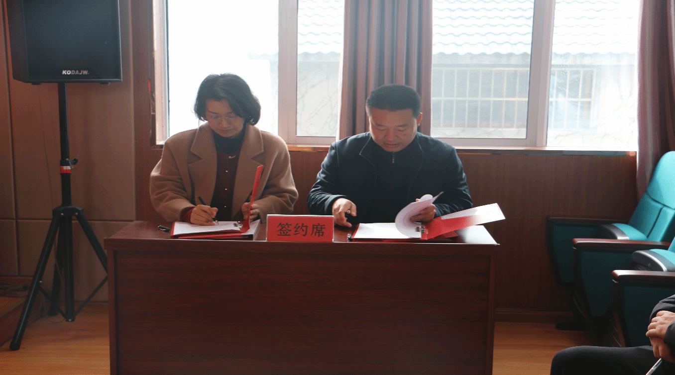 兰陵县特殊教育中心主任曹计广与6165cc金沙总站检测中心胡金萍老师签署实践教学基地、就业实习基地协议。
