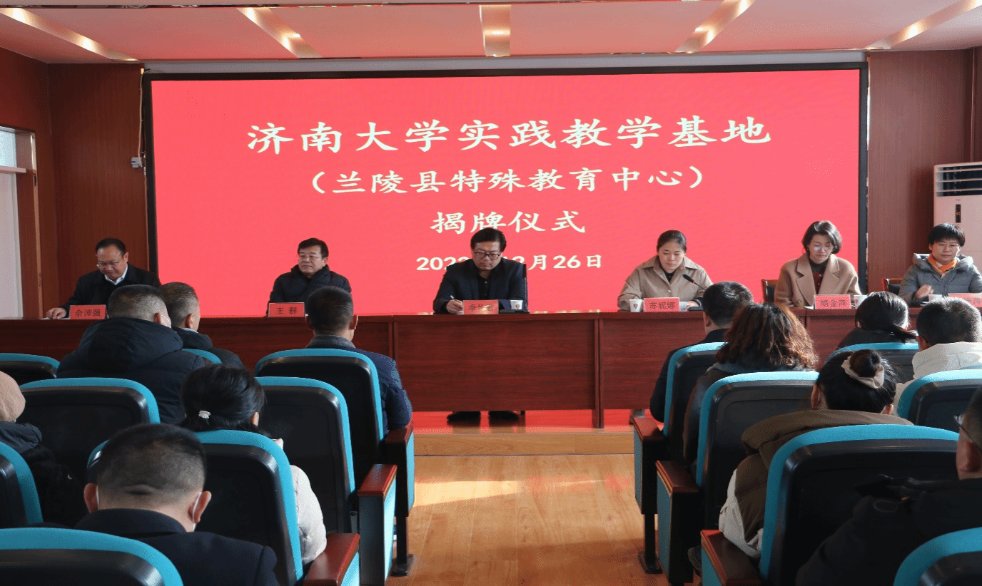 兰陵县委常委、宣传部部长、统战部部长、教育工委书记,县政协党组副书记苏妮娜致辞。她指出,济南大学实践教学基地和就业实习基地落户兰陵,是高等教育和特殊教育的密切融合,符合国家教育改革发展大势。我们将为实践教学基地和就业实习基地创造良好的环境,指派教学经验丰富的教师指导实习。同时,期待今后双方能进一步拓展合作的空间,在教学科研、教师专业发展等方面进行深入交流,实现联合培师育人的目的。