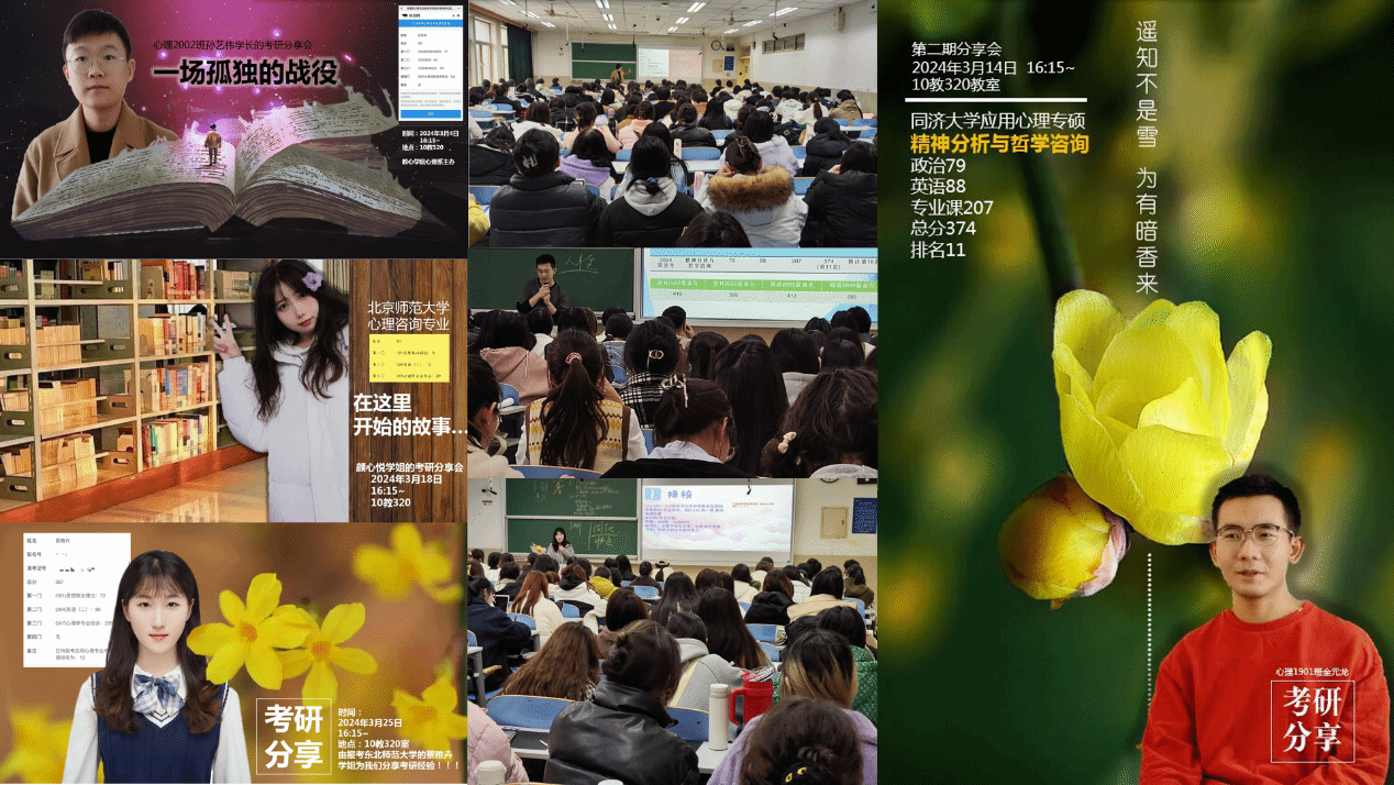 6165cc金沙总站检测中心为提升应用心理学专业学生的学业素养,推动6165金沙总站官方入口本科毕业生考研升学指导工作开展,2024年3月,心理系协同学院学生办公室共同开设了四期专场考研分享会。分享会分别邀请了四位考研成就优异的学长学姐,面向应用心理学专业2021级同学进行了经验分享,激励同学们的考研学习热情,让同学们明确考研目标、坚定考研决心,掌握考研技巧。