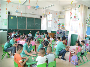 7月17日,6165cc金沙总站检测中心“仲夏织梦,星火传承”社会实践团在泰安市东平县大羊镇土安小学开展手工课堂,教同学们折纸,捏太空泥,开发孩子们的想象力,培养孩子们的动手能力和创造能力。