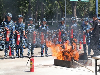 活动伊始,由李玮警官为学生讲述心脏复苏术的操作要领与注意事项,并介绍了AED急救设备的使用方法。为了帮助学生正确地掌握这些技术,李玮警官准备了人体模型,与助手一同向学生演示,并对学生的动作进行指导纠正。随后高峰警官向学生介绍人民防空的任务,重点说明了遭遇空袭如何安全逃生,空袭前的防护准备并联系济南市的具体情况进行分析,同时向学生演示了规避危险的正确方式。随后,警官以之前一些学校发生的火灾为例,重点讲述了学校消防安全知识、灭火器使用常识、逃生自救方法以及如何利用安全装置逃生等具体问题。最后,学生们在警官的安排下进行了消防演习。演习过程中,学生们毫不慌乱,井然有序,安全地撤离了会场。警官们还向学生们现场演示了灭火器的用法,并使学生使用灭火器顺利地扑灭了火焰。