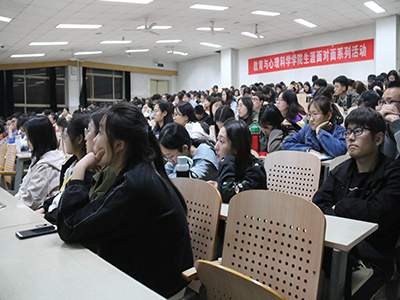 本次活动分为主题讲座、自由提问和生涯咨询平台介绍三个环节。讲座伊始,虞老师便抛出两个问题:对未来和求学的看法,以及如何设计自己的人生。随后,虞宁宁老师将话锋一转,讲起了自己在美国访学经历中的所见所闻。讲解覆盖衣、食、住、行与教育等多个领域,从各个方面解读了美国文化。随即,虞老师又介绍起自己在美国访学期间认识的一众性格迥异的朋友。借着这众朋友不尽相同的选择与谋求到的出路,虞老师总结道:选择最适合的路,过好当下的生活,这样才能一步一步走向想要的未来。讲座尾声,虞老师再次提起了开始提出的两个问题,并给出了答案:“不要让历史击败你,有想法现在就去做。让生活由自己设计,人生由自己决定。”