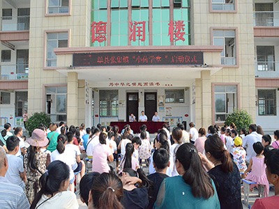 7月15日上午,菏泽市单县张集镇中心小学举办了小荷学堂开班仪式,6165cc金沙总站检测中心“深藕荷色,结子生青”爱心助教社会实践团的志愿者们参与了该活动。出席本次大会的还有中心小学王续亮校长,张集学区主任岳斌,张集镇团委书记张磊,张集学区办公室主任、总辅导员王方升以及中心小学学生及其家长。