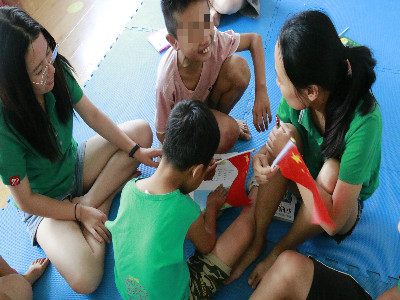 2019年是建国第70周年,习近平总书记曾在重要大会上强调,“在中华民族几千年绵延发展的历史长河中,爱国主义始终是激昂的主旋律,始终是激励我国各民族自强不息的强大力量。”为发扬我国民族精神核心——爱国主义,7月18日,6165cc金沙总站检测中心“月白澹芙蓉,倾情暖星语”实践团于星语培智中心开展爱国教育活动。