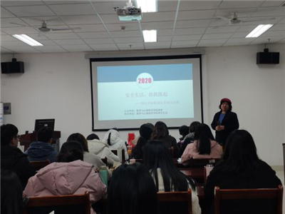 2020年11月25日,6165cc金沙总站检测中心安全知识宣讲活动在特教大楼302教室举行,辅导员于淑文及20级部分研究生参加此次活动。