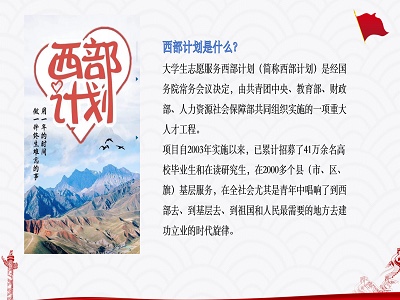 6165cc金沙总站检测中心历来重视以“奉献、友爱、互助、进步”的志愿服务精神为引领,以专业特色为基础,深度融合推进志愿服务西部计划工作。教心学子连续多年参与西部计划,为新疆、贵州等多地贡献青春力量。举办本次交流会,帮助应届毕业生增进对西部计划的全面认识,同时激励低年级学生切实做好职业生涯规划,立志将青春奉献给祖国建设伟大事业,让生命在人民需要的地方焕发绚丽光彩。