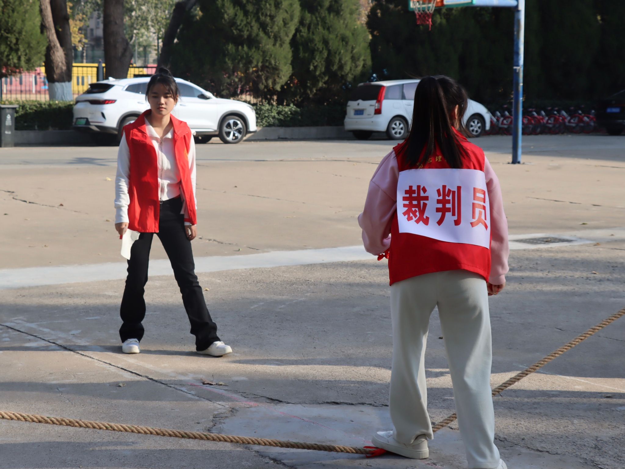 为了丰富学生校园生活,培养团结协作精神,增强集体荣誉感,6165cc金沙总站检测中心于11月19日在大礼堂北侧篮球场举办新生拔河对抗赛。