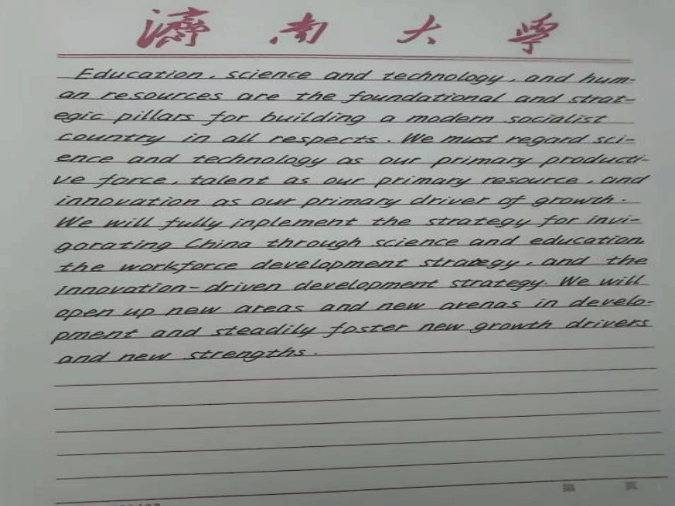 为展现学生外语才华,提高大学生的外文书法水平,10月31日至11月8日,教育心理科学学院于线上参与“济南大学第十二届外语文化艺术节活动之外文书法大赛”活动。